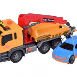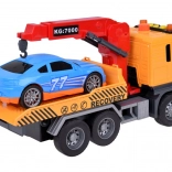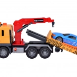 Veľká hračka odťahovka so svetelnými a zvukovými efektmi a modrým závodným autom je ideálna pre malých milovníkov áut! Tento set ponúka realistické detaily a funkcie, vďaka ktorým sa deti stanú hrdinami na ceste.