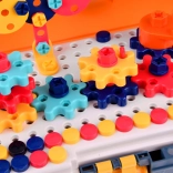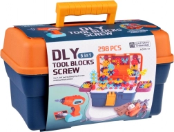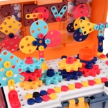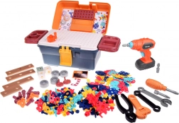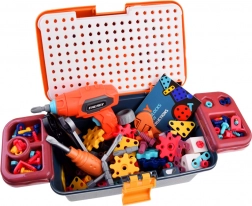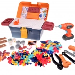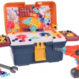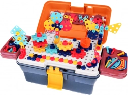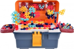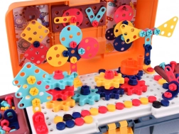 Farebná prenosná dielňa pre malých kutilov prináša 298 dielov na skrutkovanie, stavanie a tvorenie. Kufrík s pracovnou doskou s otvormi a organizérmi obsahuje detskú vŕtačku/skrutkovač, skrutky, matice, ozubené kolieska a stavebné dieliky na tvorbu 2D aj 3D modelov. Rozvíja jemnú motoriku, logické myslenie a kreativitu detí od 3 rokov.