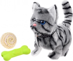 Roztomilé sivé interaktívne mačiatko si získa srdce každého dieťaťa. Po vložení batérií sa začne pohybovať dopredu aj dozadu, mňaukať, hýbať hlavou, tlamičkou a chvostíkom. Súčasťou sú aj doplnky na hru – mäkká gumová kosť a farebná šnúrková loptička. Príjemne mäkký plyš je ideálny na maznanie aj každodenné hranie.