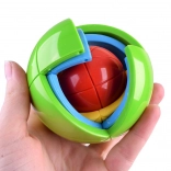 Viacfarebné vrstvy možno ľahko oddeliť a znova spojiť do celej gule. Precvičte logiku aj trpezlivosť a užite si opakovateľnú výzvu.