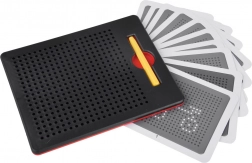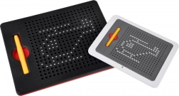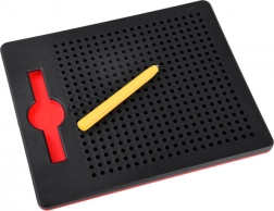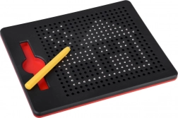 Táto kompaktná magnetická tabuľka je ideálna pre deti aj dospelých ako relaxačná a zároveň vzdelávacia pomôcka. Magnetický hrot priťahuje guľôčky do otvorov a vytvára jasné body, z ktorých ľahko poskladáte obrázky, čísla či písmená. Hotový motív zotriete jednoducho zatlačením guľôčok späť – tabuľka je tak nekonečne znovupoužiteľná.