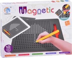 Objavte zábavu a učenie v jednom s touto magnetickou kresliacou tabuľkou. Pomocou magnetického stylusu vytvárate obrázky z kovových guľôčok, ktoré vyskočia na povrch a ľahko ich zatlačením prsta vrátite späť. Súčasťou sú šablóny pre inšpiráciu aj voľnú tvorbu, ktoré rozvíjajú kreativitu, jemnú motoriku, koncentráciu a priestorové myslenie.