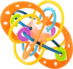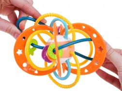 Toto farebné hryzátko s hrkálkou ponúka bábätku množstvo podnetov pre rozvoj zmyslov. Prepletené slučky sa ľahko uchopujú malými rúčkami, striedajúce sa textúry masírujú ďasná a zmierňujú nepohodlie pri raste zúbkov. Ľahká konštrukcia je ideálna na doma aj na cesty.