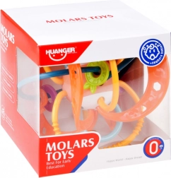 Ľahké a bezpečné zmyslové hryzátko s prepletenými farebnými slučkami podporuje jemnú motoriku, upokojuje pri prerezávaní zúbkov a láka k objavovaniu rôznych textúr a tvarov. Všetky hrany sú zaoblené a materiály sú bezpečné pre deti od 0 mesiacov.