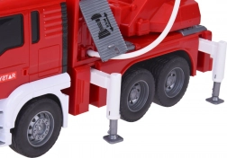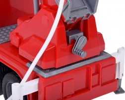 Pevná plastová konštrukcia v živých farbách, gumové pneumatiky pre lepšiu priľnavosť a bočné kapsy a výsuvné podpery dodávajú hre na autentickosti. Otočný výložník 360° a praktická priehradka na hadicu podporujú rozvoj jemnej motoriky, fantázie a tímovej hry.