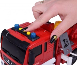 Toto detailne spracované hasičské vozidlo nadchne malých hrdinov realistickými funkciami – od skutočnej vodnej pumpy s hadicou cez svietiace majáky a sirénu až po manuálne výsuvný a polohovateľný rebrík. Vďaka pohonu na zotrvačník sa auto rozbehne bez batérií, svetlá a zvuky sú napájané priloženými batériami.