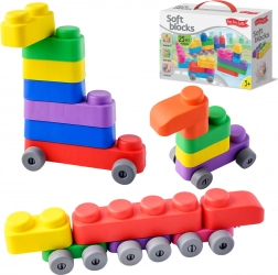 Objavte nekonečné možnosti zábavy s touto mäkkou stavebnicou Far Far Land, ktorá obsahuje 25 farebných blokov a 16 koliesok, všetko vyrobené z bezpečného materiálu.