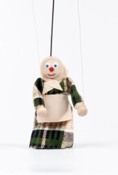 Veľkosť 12 cm (bez vodiaceho drôtika) je praktická pre malé ruky aj domáce javisko. Vďaka vodiacim nitkám možno bábku plynulo rozhýbať a rozohrať tak klasické aj moderné príbehy. Farebné detaily sa môžu líšiť, čo podčiarkuje originalitu každého kusu.