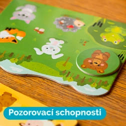 Perfektný tréner pre rozvoj pozornosti, pamäti a jemnej motoriky. Všetky diely majú zaoblené rohy pre bezpečné použitie. Vychutnajte si hru doma alebo na cestách vďaka praktickému úložnému boxu s rukoväťou.