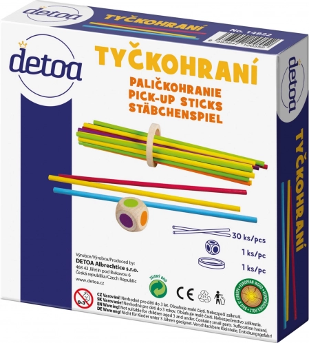 - 30 ks farebných tyčiek, 1 hracia kocka, 1 drevený krúžok