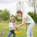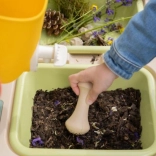 Sito, košík, naberačka, hrable, lopatka a ďalšie príslušenstvo inšpirujú k vareniu z blata, piesku aj kvetov a podporujú spoločnú hru.
