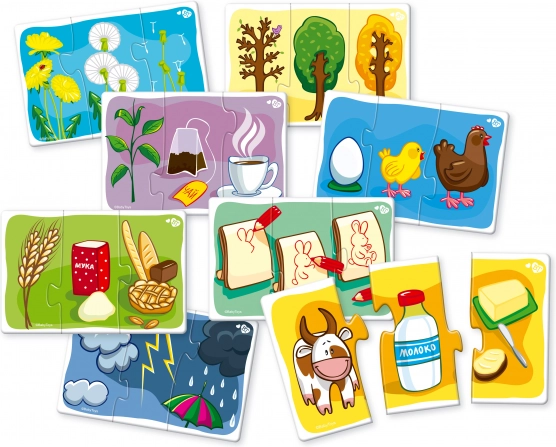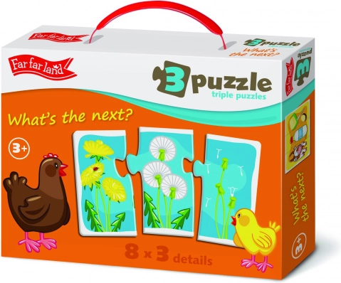 Far Far Land puzzle trojice ponúka zábavnú a vzdelávaciu aktivitu pre deti. Každé balenie obsahuje 8 unikátnych puzzle obrázkov pozostávajúcich z troch dielikov, ktoré zobrazujú predmety patriace do jednej sady.