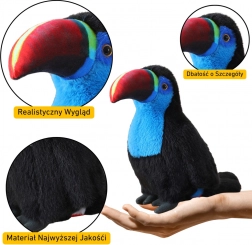 Tento tukan spája hebkosť a kvalitu s pôsobivým dizajnom. Čierne perie s modrými akcentmi a viacfarebný zobák dodávajú hračke verný vzhľad, ktorý si deti okamžite zamilujú. Jemné švy a precízne spracovanie zabezpečujú dlhú životnosť aj pri každodennom hraní.