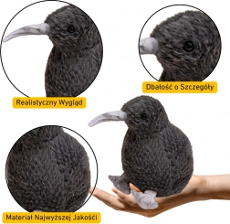 Tento plyšový kiwi v elegantnej čiernej farbe je navrhnutý s dôrazom na detaily – dlhý zobák, krátke nožičky a hebký povrch vytvárajú vernú podobu tohto jedinečného vtáka. Vďaka kompaktnej výške 17 cm sa ľahko zmestí do detskej rúčky a stane sa obľúbeným spoločníkom na hranie aj spanie.