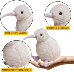 Plyšový kiwi v elegantnej bielej farbe je dokonalým spoločníkom na každodenné hranie aj upokojujúce zaspávanie. Vďaka kvalitnému spracovaniu a hebkému povrchu si ho deti rýchlo zamilujú. Realisticky tvarovaný zobáčik a labky podčiarkujú jeho autentický vzhľad.
