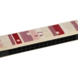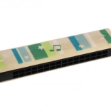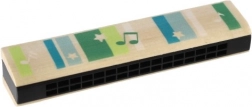 Harmonika je vyrobená z kombinácie dreva a plastu pre príjemný úchop a dlhú životnosť. Je vhodná pre začiatočníkov – stačí fúknuť a striedať nádych s výdychom pre jednoduché melódie.