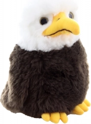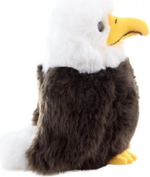 Plyšový orol s bielou hlavou, žltým zobákom a hnedým telom je vytvorený tak, aby čo najvernejšie napodobňoval skutočného orla.