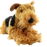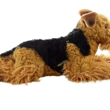 Plyšový pes verne napodobňuje vzhľad skutočného Airedale teriéra vďaka detailnej kombinácii hnedej a čiernej farby.