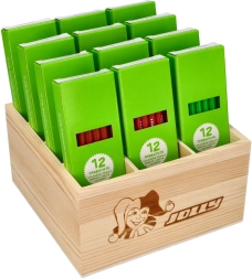 - Farebné pastelky sú uložené v štýlovej drevenej krabičke