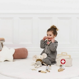 Táto unikátna veterinárna brašna s príslušenstvom je ideálna pre malých zvedavých veterinárov. Sada obsahuje 10 ks nástrojov, ktoré sú vyrobené z moreného prírodného dreva s certifikáciou FSC, čo zaisťuje ekologický a udržateľný pôvod. Deti sa môžu ponoriť do sveta starostlivosti o zvieratká vďaka skvelým nástrojom, ako sú stetoskop, nožnice a injekčná striekačka. Brašna je navrhnutá tak, aby podporovala kreativitu a rozvíjala predstavivosť.