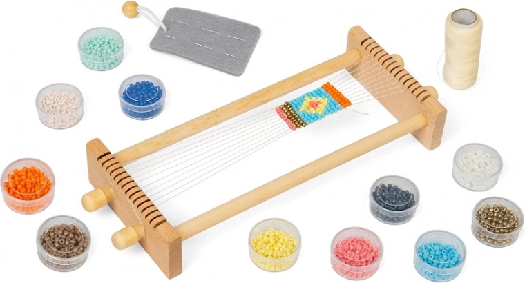 Tento detský tkáčsky stav z dielne Bigjigs Toys je perfektnou voľbou pre rozvoj kreativity a jemnej motoriky. Stav je dodávaný so všetkým potrebným vrátane ihiel, plsteného ihličníka, bavlniek a 12 rôznofarebných korálok.