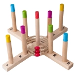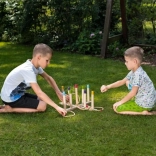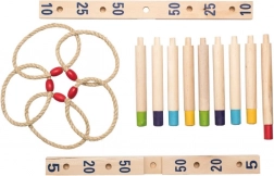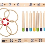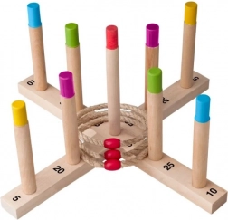 Zažite zábavu s drevenou hrou s hádzaním krúžkov. Cieľom je hodiť päť pletených povrazových krúžkov na drevený kríž s tyčkami a získať čo najviac bodov. Táto hra je skvelá pre rozvoj obratnosti, trpezlivosti a koncentrácie. Hra zahŕňa: