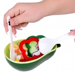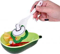 Miska je navrhnutá v tvare avokáda s realistickými detailmi, ktorú deti môžu použiť na servírovanie plastových ingrediencií. Podporuje tak hru na kuchára a rozširuje detský svet fantázie.