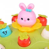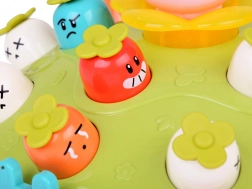 Zábava je nielen vizuálna a sluchová, ale aj motorická. Dieťa môže sledovať, ako jeho údery kladivkom ovplyvňujú správanie jednotlivých postavičiek. K dispozícii je bezpečné kladivko s mäkkým zakončením. Po skončení hry možno kladivko uložiť do určeného otvoru vedľa mrkvičiek.