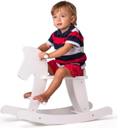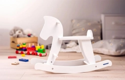 Objavte nadčasovú klasiku do detskej izbičky: biely drevený hojdací koník, ktorý spája radosť z pohybu a podporu prirodzeného vývoja. Hojdavý pohyb pomáha rozvíjať rovnováhu, koordináciu aj hrubú motoriku, zatiaľ čo nízka výška sedadla (cca 28 cm) dodáva deťom istotu pri prvých jazdách.