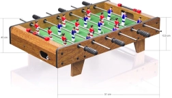 Zábava pre celú rodinu s dreveným stolným futbalom, ktorý ponúka odolnú konštrukciu z MDF, kompaktné rozmery 51 × 45 × 12,5 cm a bezpečné oblé hrany. Vďaka kovovým tyčiam s pohodlnými rukoväťami, ručným počítadlám a 2 loptičkám si zahráte v počte 2 až 4 hráčov kedykoľvek doma aj na cestách.
