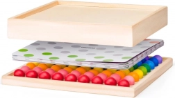 Sada obsahuje vrstvy kariet s farebnými bodkami, ktoré zodpovedajú farbám guľôčok. Deti podľa nich ľahko skladajú obrázky a trénujú presnosť aj sústredenie.