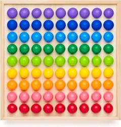 • Kvalitný materiál: pevná drevená doska a odolné guľôčky v farbách dúhy.