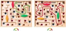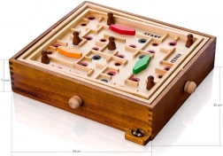 Drevený naklápací labyrint je klasická stolová hra, ktorá deti aj dospelých preverí v presnosti a sústredení. Cieľom je bezpečne previesť guľôčku spletitým bludiskom zo START do FINISH a nenechať ju spadnúť do otvorov. Robustná drevená konštrukcia je príjemná na dotyk a odolá aj častému používaniu.
