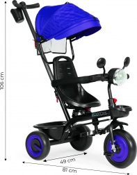 3v1 detská trojkolka s otočným sedadlom a strieškou, modrá, ECOTOYS