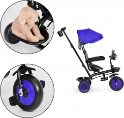 Trojkolka ECOTOYS kombinuje kočíkový komfort s radosťou z jazdy. Vďaka otočnému sedadlu 360° môžete dieťa voziť čelom k rodičovi alebo v smere jazdy. Bytelný oceľový rám, polstrovanie z odolnej Oxford tkaniny a EVA kolesá (10"/8") zabezpečujú stabilnú a tichú jazdu doma aj vonku.