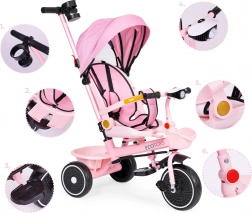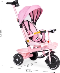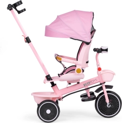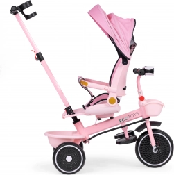 Detská trojkolka 2v1 s otočným sedadlom a skladacou strieškou, ružová ECOTOYS