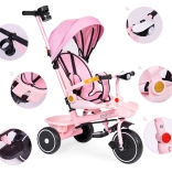 Univerzálna detská trojkolka 2v1 od ECOTOYS rastie s vaším dieťaťom od 6 mesiacov do 6 rokov. Ponúka otočné sedadlo 360°, skladaciu striešku, oceľový rám, bezúdržbové EVA kolesá a rodičovské ovládanie. Pre maximálne pohodlie a bezpečie nechýba päťbodový pás, ochranné madlo, sklopné opierky nôh, košíky na drobnosti a svetlo so zvukmi.
