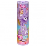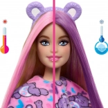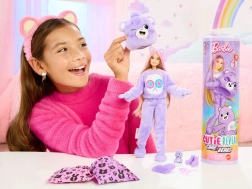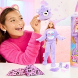 Plyšový fialový kostým nielen pekne vyzerá, ale možno ho premeniť na štýlovú bundu pre bábiku. Veľká medvedia hlava sa navyše mení na peliešok pre mini medvedíka.