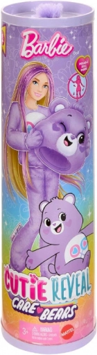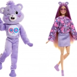 Bábika je ukrytá v hebučkom, plyšovom kostýme fialového medvedíka Nežné srdce – symbolu empatie a starostlivosti. Po zložení kostýmu sa odhalí krásna bábika s dlhými vlasmi pripravená na styling. Časti kostýmu ľahko premeníte na štýlovú bundu, zatiaľ čo medvedia hlava sa zmení na rozkošný peliešok pre mini figúrku CARE BEARS.