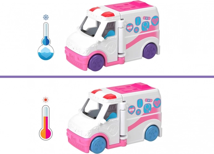 Táto mini sanitka inšpirovaná svetom BARBIE prináša veľa zábavy v malom balení. Vozidlo sa po otvorení premení na malú kliniku, kde môže minipanenka starať sa o pacientov, sedieť na otočnom sedadle a rozprávať vlastné záchranárske príbehy. Vďaka kompaktným rozmerom je set ideálny doma aj na cesty.