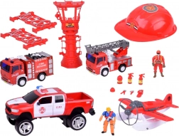 Set obsahuje hasičské vozidlá s realistickým dizajnom, vrátane posuvného rebríka a vodného dela, čo zaisťuje skvelú zábavu pri imaginatívnej hre.