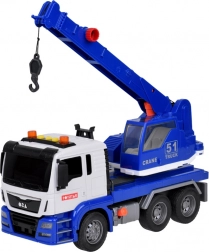 Tento kvalitný autožeriav je navrhnutý pre malých staviteľov a ponúka mnoho realistických funkcií. Je vybavený pohyblivým ramenom s hákom, ktorý umožňuje zdvíhanie a prenášanie predmetov, a zvukovými efektmi, ktoré napodobňujú štartovanie motora, cúvanie a klaksón.