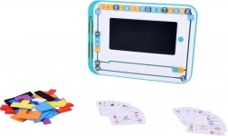 Sada zahŕňa farebné drevené kocky, ktoré je možné skladať na zadnej strane tabletu alebo inde podľa ľubovôle.