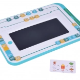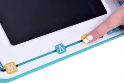 Hlavným prvkom sady je tablet s LCD tabuľkou a stylusom, ktorý umožňuje deťom jednoduché písanie a kreslenie. Okolo obrazovky sa nachádzajú pohyblivé farebné písmenká, ktoré je možné presúvať a skladať do slov. Tablet je vybavený okrúhlym tlačidlom 'kôš', ktoré maže obsah na tabuli, a čiernym posuvníkom pre zabránenie nechtěného vymazania.