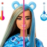 Po zložení roztomilého modrého medveďa sa odhalí štýlová bábika Barbie s pohyblivými kĺbmi. Hornú časť kostýmu možno obrátiť a premeniť na mäkučkú módnu bundičku, medvedia hlava sa zmení na peliešok pre mini medvedíka. V balení nájdete doplnky na obliekanie a česanie, ktoré zaručia hodiny zábavy.