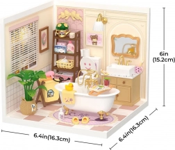 Vytvorte si vlastné kúpeľňové dioráma v jemných pastelových tónoch s vaňou na nožičkách, zrkadlom, poličkami a množstvom miniatúrnych doplnkov. Vďaka presne vyrezaným dielikom zo stabilných materiálov zostavíte model ľahko a bez lepidla – a výsledkom je pevná, nádherne detailná mini scéna ideálna na poličku aj ako darček.