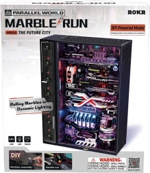 Vytvorte si doma pulzujúce sci‑fi panoráma s rýchlymi zjazdmi medzi výškovými budovami, potrubím a továrňami. Automatický výťah posiela guľôčky späť na štart a neónové LED osvetlenie dodáva celej scéne kyberpunkovú atmosféru. Jediným tlačidlom prepnete medzi „rušným dňom“ a „farebnou nocou“.