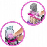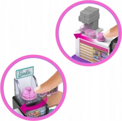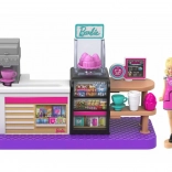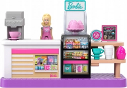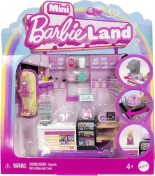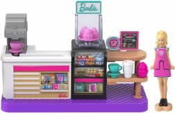 Mini cukráreň prináša množstvo realistických prvkov pre nekonečné hranie. Nechýba stanovište na prípravu kávy s posuvným kelímkom, otáčacia vitrína s „pečivom“ a zabudovaný stolík so sedením pre zákazníkov. Mini bábika BARBIE sa ohybuje v páse, pohodlne sedí pri stole alebo za pultom a stojí na srdiečkovej podstave kompatibilnej s ostatnými setmi série MINI BARBIE LAND.
