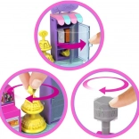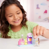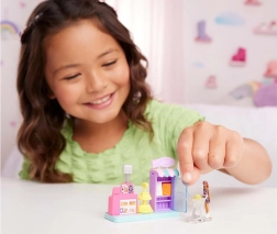 Mini bábika BARBIE (cca 3,5 cm) sa ohýba v páse, môže sedieť či sa nakláňať k pultu a stojí na podstavci v tvare srdca, ktorý pasuje k ďalším domčekom, vozidlám a setom série MINI BARBIE LAND. Hra prirodzene rozvíja predstavivosť, jemnú motoriku aj sociálne zručnosti.