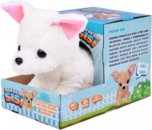 Objavte Sisi – interaktívneho plyšového psíka, ktorý poteší každého malého milovníka zvieratiek. Vďaka hebkej krémovej kožušine, ružovým uškám a roztomilému výrazu je Sisi ideálnym kamarátom na maznanie. Po zapnutí reaguje na dotyk, pohybuje hlavou, vrtí chvostíkom a vydáva realistické zvuky.